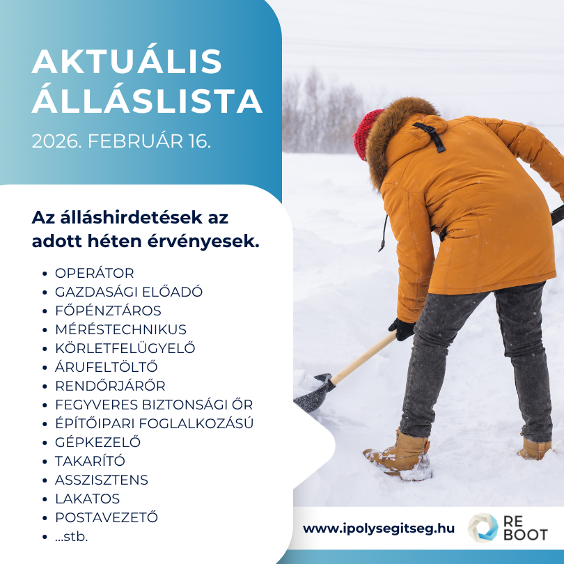 Az álláshirdestések az adott héten érvényesek. Tekintse meg az aktuális álláslistankat az alább letölthető dokumentumban!